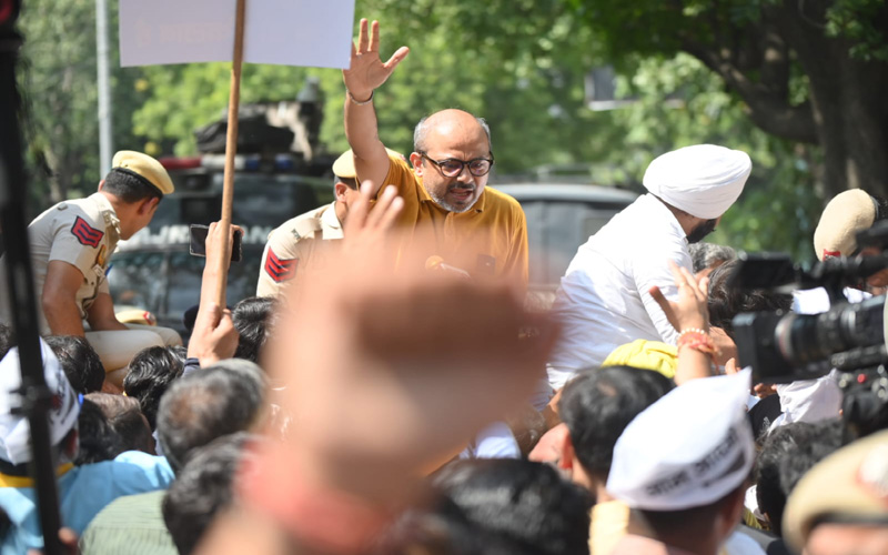 संजय सिंह की गिरफ्तारी के विरोध में AAP का प्रचंड प्रदर्शन