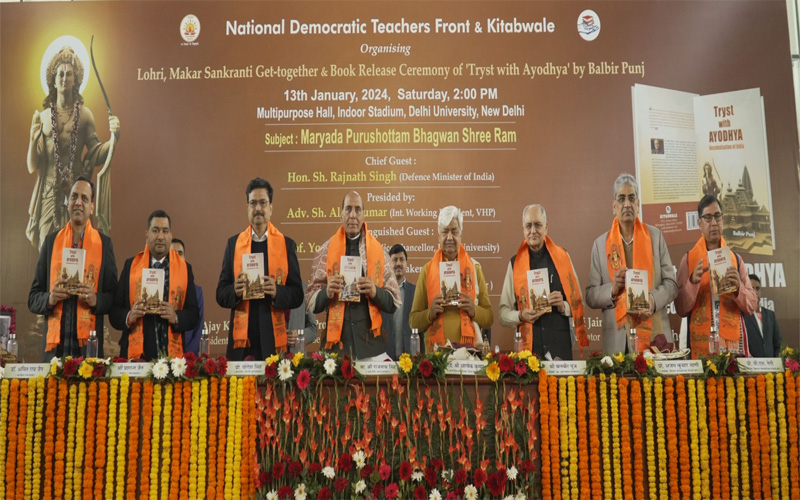 नई दिल्ली। रक्षामंत्री राजनाथ सिंह ने शनिवार को पूर्व संपादक, पूर्व राज्यसभा सांसद एवं लेखक बलबीर पुंज की पुस्तक ट्रायस्ट विथ अयोध्या: डीकोलोनाइजेसन ऑफ़ इंडिया (Tryst with Ayodhya: Decolonisation of India) के विमोचन के अवसर पर कहा कि अयोध्या तोड़ती नहीं जोड़ती है। इस पुस्तक का प्रकाशन किताबवाले द्वारा किया गया।