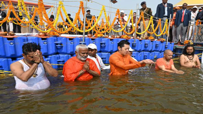 भूटान नरेश जिग्मे खेसर ने संगम में लगाई अस्था की डुबकी