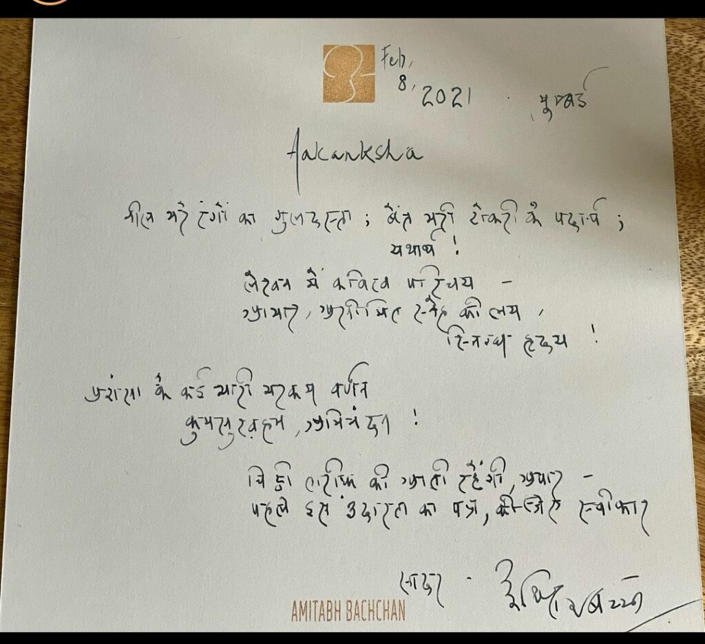 Congrats Aakanksha! यू आर लकी! Big B का ये लेटर बेहद अनमोल है