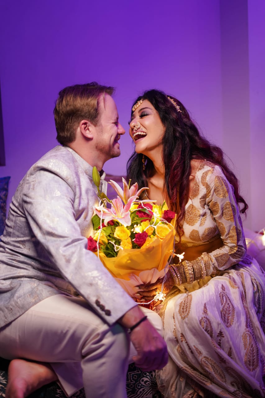 हिंदी फिल्मों जैसे भिंडी बाजार, द पास्ट, मुंबई 125 किमी, जेडी, आदि के लिए जाने जाने वाले अभिनेत्रि को आखिरी बार भारत द्वारा सर्जिकल स्ट्राइक पर एक डिजिटल फिल्म ‘द हिडन स्ट्राइक’ में देखा गया था। इस अवसर पर बोलते हुए उन्होंने कहा; “जब आपके बड़े दिन के लिए सार्टोरियल लाइन-अप की बात आती है, तो पारंपरिक संगठनों का स्पष्ट रूप से एकाधिकार होता है। भारतीय शादी का रिसेप्शन मेरे लिए अपने कपड़ों को निजीकृत करने के लिए एकदम सही घटना थी। मैंने एक थीम देने के लिए सुनहरे डिजाइन तत्वों के साथ एक सफेद लहंगा चुना। पवित्रता और रॉयल्टी दोनों का प्रतीक है। जबकि एरॉन ने एक समुद्री नीला और चांदी का बंदगला चुना जो उसकी आंखों के रंग के साथ-साथ शाम के लिए मेरे लुक को कॉम्प्लिमेंट करता था। ”