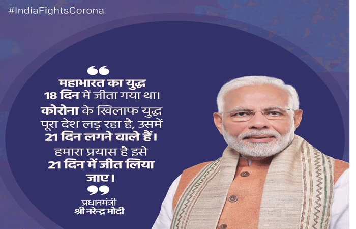 नई दिल्ली। कोराना वायरस से लड़ाई की तुलना ‘महाभारत के युद्ध’ से करते हुए प्रधानमंत्री नरेंद्र मोदी ने बुधवार को कहा कि 130 करोड़ महारथियों के बलबूते और सामाजिक दूरी …