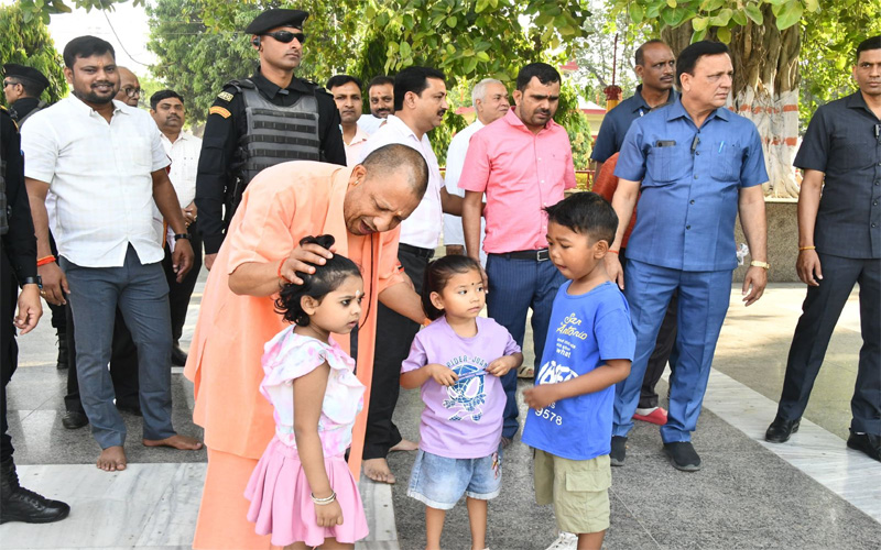गोरखनाथ मंदिर प्रवास के दौरान सीएम योगी मंगलवार सुबह मंदिर परिसर का भ्रमण करने निकले थे। इस दौरान भ्रमण पथ पर उन्हें कुछ मासूम बच्चे भी टहलते हुए मिल गए। ये बच्चे अपने परिजनों के साथ मंदिर आए थे। बच्चों को देखते ही मुख्यमंत्री ने मुस्कुराते हुए उन्हें अपने पास बुला लिया। एक-एक करके सबके माथे पर हाथ फेरकर उन्होंने आशीर्वाद दिया और नाम पूछा।