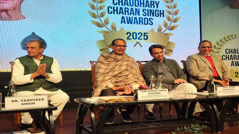 नई दिल्ली। केंद्रीय कृषि एवं किसान कल्याण और ग्रामीण विकास मंत्री श्री शिवराज सिंह चौहान ने आज नई दिल्ली में किसान ट्रस्ट द्वारा पीएचडी चैंबर ऑफ कॉमर्स एंड इंडस्ट्री में आयोजित चौधरी चरण सिंह किसान सम्मान समारोह में मुख्य अतिथि के रूप में भागीदारी की। इस अवसर पर केंद्रीय कृषि मंत्री ने पुस्तक का भी विमोचन किया तथा प्रगतिशील किसान और कृषि क्षेत्र में उल्लेखनीय योगदान के लिए संस्थानों को सम्मानित किया। समारोह में शिक्षा और कौशल विकास एवं उद्यमिता राज्य मंत्री (स्वतंत्र प्रभार) श्री जयंत चौधरी विशिष्ट अतिथि के रूप में शामिल हुए।
