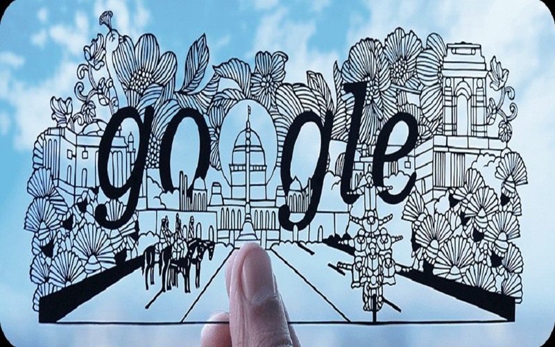 गूगल के इस डूडल को अहमदाबाद के पार्थ कोथेकर ने तैयार किया है। यह पेपर आर्ट वर्क है। इसमें राष्ट्रपति भवन, इंडिया गेट, सीआरपीएफ मार्चिंग दल और मोटरसाइकिल सवार नजर आ रहा है।