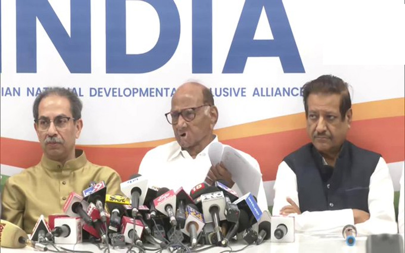 मुंबई। महाराष्ट्र में शिवसेना का उद्धव गुट 21 सीटों पर, NCP SCP 10 सीटों पर और कांग्रेस 17 सीटों पर चुनाव लड़ेगी। सीट-बंटवारे के फॉर्मूले की घोषणा शरद पवार, उद्धव ठाकरे और राज्य कांग्रेस अध्यक्ष नाना पटोले, कांग्रेस विधायक दल के नेता बालासाहेब थोराट और पूर्व मुख्यमंत्री पृथ्वीराज चव्हाण सहित कांग्रेस नेतृत्व द्वारा संबोधित एक संयुक्त संवाददाता सम्मेलन में की गई। एमवीए (आई.एन.डी.आई.ए. ब्लॉक) भाजपा के नेतृत्व वाली महायुति से मुकाबला कर रही है, जिसमें एकनाथ शिंदे के नेतृत्व वाली शिवसेना और अजीत पवार के नेतृत्व वाली एनसीपी शामिल है।