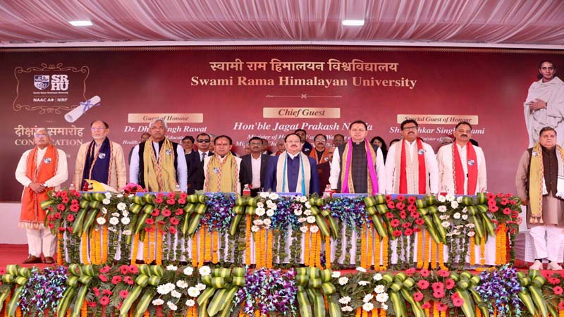 देहरादून। केंद्रीय स्वास्थ्य एवं परिवार कल्याण मंत्री श्री जगत प्रकाश नड्डा ने देहरादून स्थित स्वामी राम हिमालयन विश्वविद्यालय के 8वें दीक्षांत समारोह को संबोधित किया और स्नातक छात्रों को उनकी शैक्षणिक यात्रा सफलतापूर्वक पूरी करने पर बधाई दी।