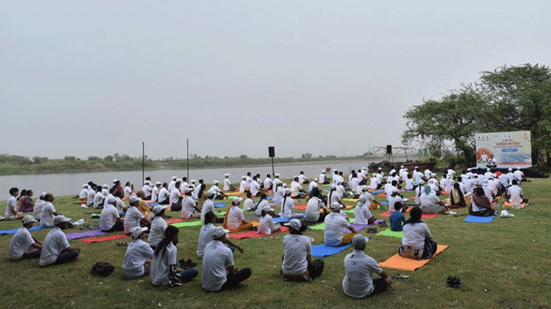 नई दिल्ली। अंतर्राष्ट्रीय योग दिवस के अवसर पर राष्ट्रीय स्वच्छ गंगा मिशन (एनएमसीजी) ने यमुना नदी के किनारे सोनिया विहार स्थित बीएसएफ कयाकिंग कैंप में ‘घाट पर योग’ कार्यक्रम का आयोजन किया। इस कार्यक्रम को बहुत उत्साहपूर्ण प्रतिक्रिया मिली। कार्यक्रम में एनएमसीजी के अधिकारियों और कर्मचारियों, दिल्ली जल बोर्ड के यमुना एक्शन प्लान (III) से जुड़े एनजीओ, सीमा सुरक्षा बल (बीएसएफ), गंगा विचार मंच, विभिन्न एनजीओ, छात्रों और बच्चों समेत लगभग एक हज़ार लोग शामिल रहे। कार्यक्रम में मुख्य रूप से राष्ट्रीय स्वच्छ गंगा मिशन के महानिदेशक श्री राजीव कुमार मित्तल, उप-महानिदेशक श्री नलिन कुमार श्रीवास्तव, कार्यकारी निदेशक (परियोजना) श्री बृजेन्द्र स्वरूप, कार्यकारी निदेशक (वित्त) श्री भास्कर दासगुप्ता, कार्यकारी निदेशक (तकनीकी) श्री अनूप कुमार श्रीवास्तव और कार्यकारी निदेशक (प्रशासन) श्री एस.पी. वशिष्ठ शामिल रहे।