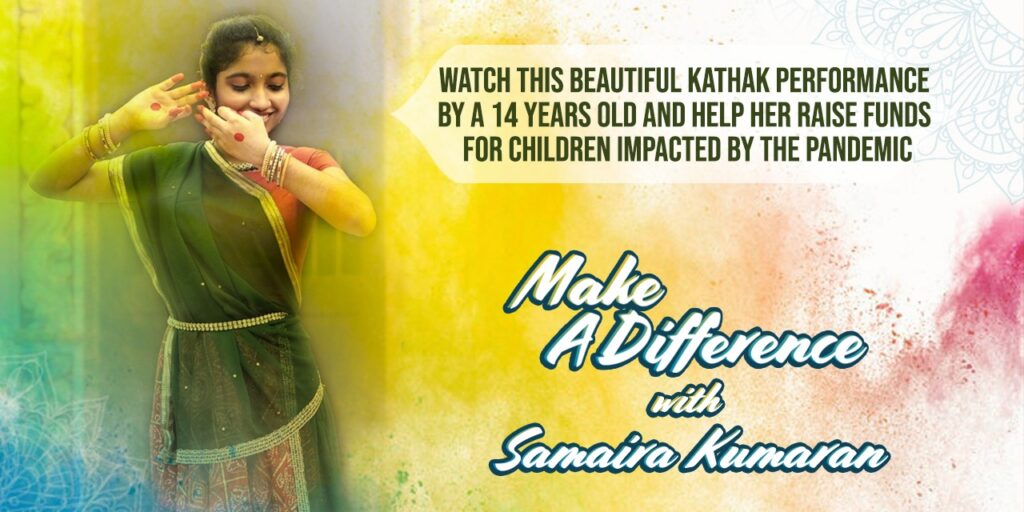 ‘बदलाव लाने’ और जरूरतमंदों की मदद करने के प्रयास में एक 14 वर्षीय प्रशिक्षित नृत्यांगना समाइरा कुमरान इस कठिन समय में उनकी मदद के लिये कथक परआधारित तीन भागों की एक आकर्षक प्रस्तुति दे रही हैं। महामारी से प्रभावित बच्चों के लिये धन जुटाने में मदद करने पर लक्षित इस ऑनलाइन शो को बिग एफएम का सहयोग प्राप्त है और यह बुकमायशो पर चलेगा। दान और टिकट की बिक्री से मिला धन गिव इंडिया को उनके नेक मिशन नो चाइल्ड हंग्री के लिये दान किया जाएगा।