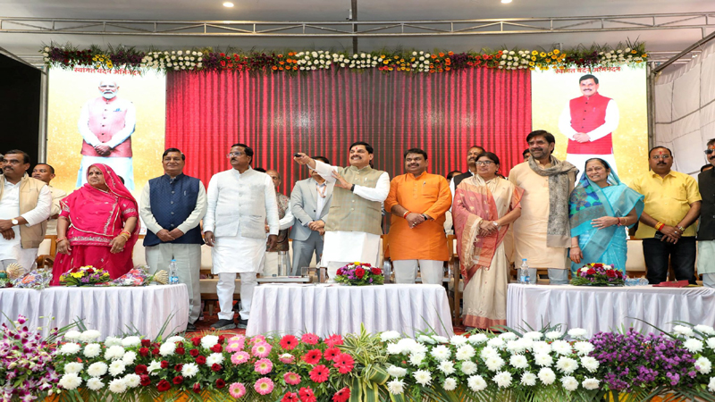 उज्जैन। मुख्यमंत्री डॉ. मोहन यादव ने कहा है कि प्रधानमंत्री श्री नरेन्द्र मोदी के नेतृत्व में देश आगे बढ़ रहा है। उन्हीं के मार्गदर्शन में बने महाकाल लोक में उज्जैन को वैश्विक आध्यात्मिक पर्यटन का केन्द्र बनाया है। मोक्षदायिनी शिप्रा मैया की कृपा से उज्जैन अब सिंहस्थ-2028 के लिए तैयार हो रहा है। भगवान महाकाल के आशीर्वाद से सिंहस्थ की तैयारियों के लिए 1133.67 करोड़ रूपए की लागत से निर्मित की जा रही हरियाखेड़ी जल आवर्धन परियोजना का भूमि-पूजन हो रहा है। इस परियोजना से सिंहस्थ-2028 के दौरान श्रद्धालुओं और नागरिकों को शुद्ध पेयजल उपलब्ध होगा। साथ ही शहर के हर घर में लंबे समय तक जल आपूर्ति सुनिश्चित होगी। सिंहस्थ के लिए उज्जैन के प्रबंधन से पूरे प्रदेश का गौरव बढ़ेगा। मुख्यमंत्री डॉ. यादव उज्जैन के ग्राम हरियाखेड़ी में जल आवर्धन परियोजना के भूमि-पूजन अवसर पर आयोजित कार्यक्रम को संबोधित कर रहे थे। मुख्यमंत्री डॉ. यादव लगभग 47.23 करोड़ लागत के 11 विकास कार्यों का लोकार्पण एवं भूमि-पूजन किया।