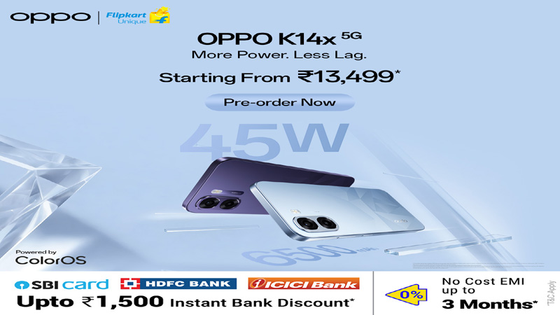 नई दिल्ली। OPPO इंडिया ने भारत में OPPO K14x 5G के लॉन्च के साथ अपनी के-सीरीज़ की मजबूत विरासत को आगे बढ़ाया। यह स्मार्टफोन पॉवर, परफॉर्मेंस और स्मूथनेस के लिए डिज़ाईन किया गया है। यह OPPO के पूरा दिन बेफिक्र उपयोग के वादे के साथ आता है। विद्यार्थियों, नौकरी की शुरुआत करने वालों, गेमर्स और किफायत पसंद करने वाले ग्राहकों के लिए बनाया गया OPPO K14x 5G भारी उपयोग के साथ भी लंबे समय तक चलता है। यह रियल-टाईम मल्टीटास्किंग के साथ यूज़र्स को पूरा दिन केंद्रित और कनेक्टेड रहने में समर्थ बनाता है।