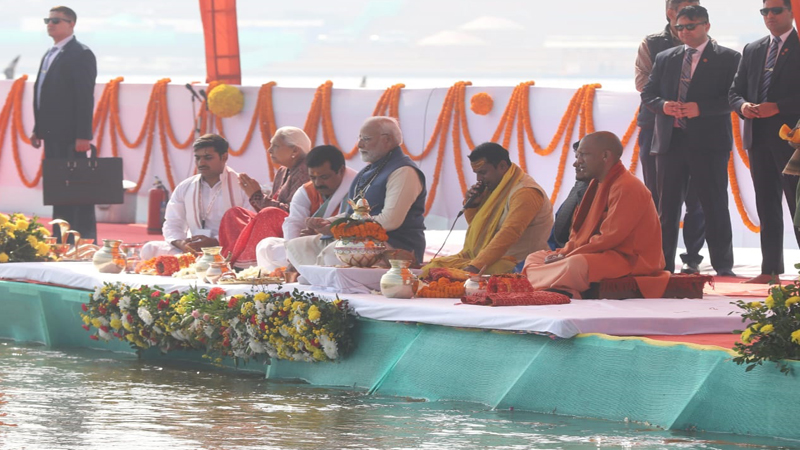 महाकुम्भ नगर। उत्तर प्रदेश में महाकुम्भ-2025 के सफल आयोजन, वैश्विक कल्याण, विश्व शांति, भारत के अरुणोदय व तीर्थराज प्रयागराज आकर पुण्य की डुबकी लगाने वाले करोड़ों भक्तों, सनातन शक्तियों के सामर्थ्य व अक्षय पुण्य की वृद्धि के उद्देश्य से पीएम मोदी ने शुक्रवार को अक्षयवट का दर्शन कर पूजन-अर्चन किया। संगम नोज पर यजमान की भूमिका में संगम अभिषेक करने के उपरांत उन्होंने अक्षय वट के दर्शन किए। अक्षय वट पर भी महाकुम्भ-2025 के सफल आयोजन के लिए बतौर यजमान भूमिका निभाते हुए पीएम मोदी ने अक्षय वट पर शीश नवाया, संकल्प लेकर अभिषेक किया और समस्त तीर्थों का आवाहन करते हुए सकल मंगलकामनाओं की पूर्ति के लिए आस्था का दीप जलाया। इसके उपरांत उन्होंने अक्षय वट की प्रदक्षिणा की और समस्त विश्व के कल्याण की कामना की। पीएम मोदी ने न केवल इस परम पावन तीर्थ पर पूजा-अर्चना की, बल्कि कॉरीडोर को लेकर हुए कार्यों का आवलोकन भी किया। उन्होंने विशेषतौर पर महाकुम्भ के अवसर पर यहां दर्शन करने आने वाले करोड़ों श्रद्धालुओं को सुगम दर्शन कराने को लेकर हुए प्रयासों की जानकारी ली और समस्त प्रक्रियाओं की विवेचना की।