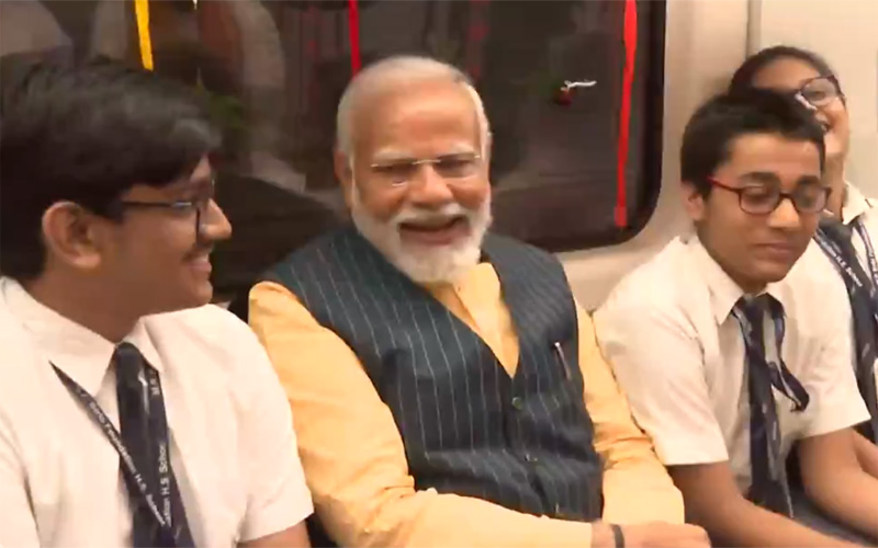 प्रधान मंत्री नरेंद्र मोदी ने भारत की पहली “अंडरवाटर मेट्रो सुरंग” के माध्यम से मेट्रो की सवारी की, जिसका अनावरण उन्होंने पश्चिम बंगाल के कोलकाता में किया। यात्रा के दौरान, वह महाकरण मेट्रो स्टेशन पर देश की उद्घाटन अंडरवाटर मेट्रो ट्रेन में बैठे स्कूली छात्रों के साथ बातचीत में लगे रहे। समाचार एजेंसी एएनआई द्वारा साझा किए गए एक वीडियो में, पीएम मोदी को छात्रों के साथ बातचीत करते देखा गया। प्रारंभ में, उन्होंने छात्रों के लिए अपने पास बैठने की व्यवस्था की और फिर बातचीत को आगे बढ़ाया।