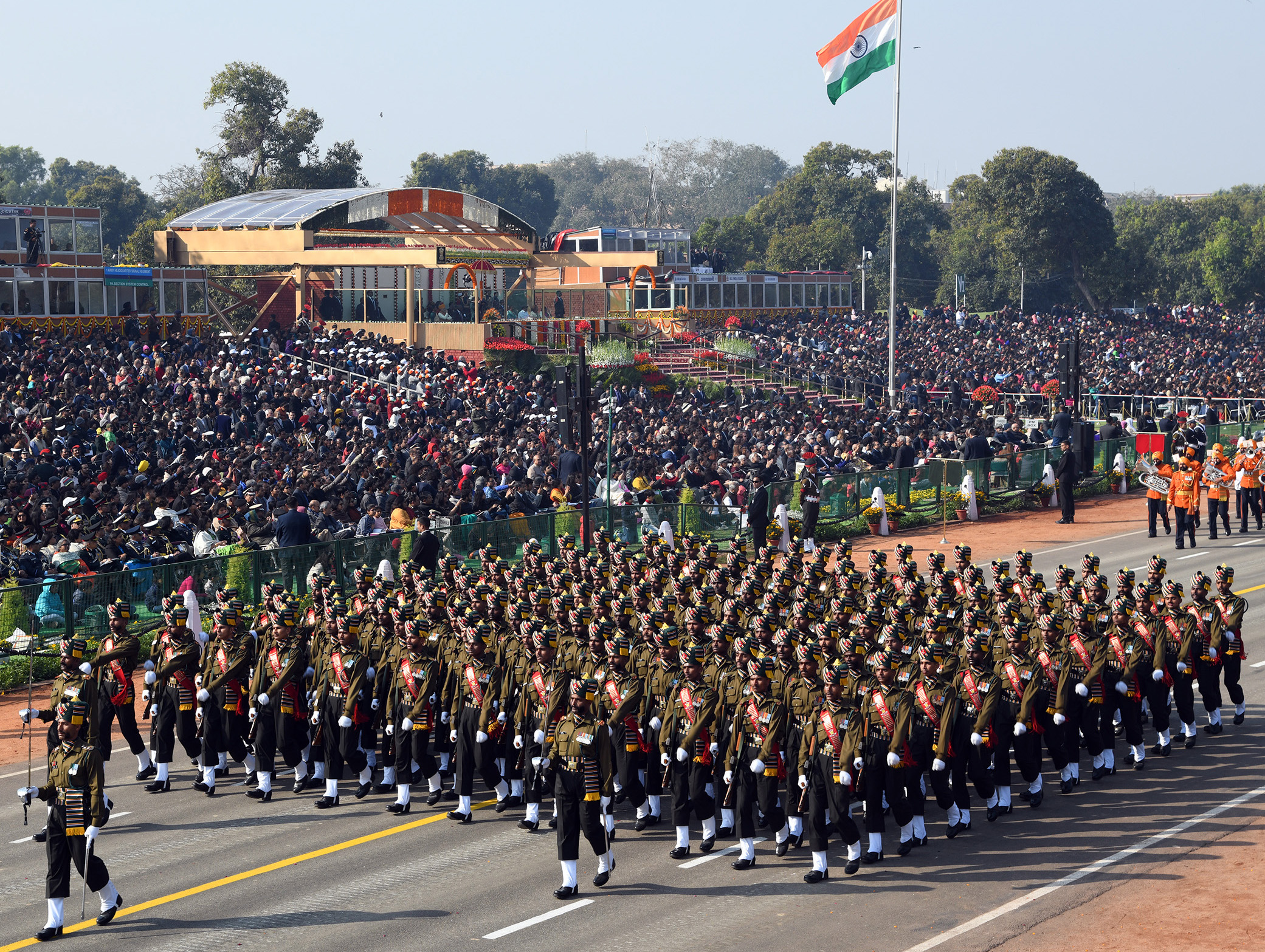 राष्ट्रीय राजधानी में 70वें गणतंत्र दिवस के जश्न पर राजपथ एवं आसपास के क्षेत्रों में कड़ी सुरक्षा व्यवस्था थी । दक्षिण अफ्रीका के राष्ट्रपति सिरिल रामफोसा इस समारोह के मुख्य अतिथि बने । राजपथ पहुंचने से पहले प्रधानमंत्री नरेन्द्र मोदी ने रक्षा मंत्री निर्मला सीतारमण और तीनों सेना प्रमुखों के साथ अमर जवान ज्योति पर शहीदों को श्रद्धांजलि दी। मोदी इस साल भी पारम्परिक कुर्ता-पायजामा के साथ नेहरू जैकेट पहने नजर आए। उन्होंने राजपथ पहुंच कर राष्ट्रपति राम नाथ कोविंद और मुख्य अतिथि की अगवानी एवं उनका स्वागत किया।