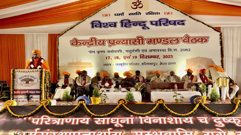 विश्व हिंदू परिषद की हस्तिनापुर में आज से प्रारंभ हुई प्रन्यासी मंडल बैठक का शुभारंभ ब्रह्मनाथ, संघ प्रार्थना व भारत माता के चित्र पर दीपप्रज्वलन के बाद हुआ। बैठक को संबोधित करते हुए स्वामी विवेकानंद जी महाराज (गुरुकुल संस्थापक भोला की झाल) ने कहा कि जब-जब असुरी शक्तियां संगठित होती हैं, तब-तब देवशक्ति का एकत्र होना अनिवार्य हो जाता है। जिस प्रकार भगवान श्रीराम के वनगमन के समय राक्षसी शक्तियां संगठित हुई थीं, उसी प्रकार आज भी अधर्म का स्वरूप सामने है। ऐसे में धर्म की स्थापना के लिए वैदिक विचारधारा को मानने वालों का संगठित होना समय की आवश्यकता है।