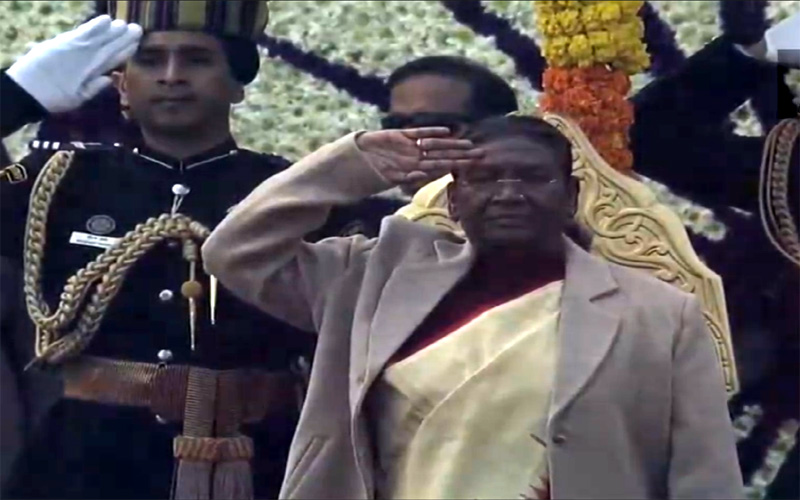 कर्तव्य पथ पर भारतीय नारी शक्ति का लहराया परचम। राष्ट्रपति श्रीमती द्रौपदी मुर्मू ने कर्तव्य पथ पर सलामी मंच से राष्ट्रीय ध्वज फहराया। उसके बाद 130 महिलाओं ने पारंपरिक भारतीय वाद्य यंत्र से पूरे देशवासियों को भारतीय गणतंत्र की शक्ति को दिखाया। यही है विरासत के साथ विकास की संकल्पना।