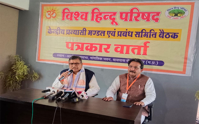 इंदौर। विश्व हिंदू परिषद की केंद्रीय प्रबंध समिति व प्रन्यासी मंडल की त्रिदिवसीय बैठक आज इंदौर के अग्रसेन महासभा भवन में प्रारंभ हुई। पत्रकार वार्ता को संबोधित करते हुए विश्व हिंदू परिषद के केंद्रीय महामंत्री श्री मिलिंद जी परांडे ने बताया कि बैठक में मंदिरों के सरकारी नियंत्रण से मुक्ति, धर्मांतरण, लव जिहाद, मुस्लिम घुसपैठ, जनसंख्या असंतुलन, बढ़ती इस्लामिक जिहादी हिंसा एवं गौ हत्या रोकने के विषयों पर योजना बनाएंगे। हिंदू विरोधी विघटनकारी शक्तियों से निपटने हेतु सामाजिक समरसता एवं एकात्मता को बढ़ाने वाले कार्यों की गति बढ़ाने की योजना बनाएंगे। देशभर में हिंदुओं की वर्तमान स्थिति, उनके समक्ष खड़ी चुनौतियों तथा उनसे निपटने के उपायों पर भी विस्तार से चर्चा की जाएगी। बैठक में मजहबी कट्टरता, चुनौती एवं समाधान विषय पर प्रस्ताव पारित करने पर भी विचार किया जा रहा है। इनके अलावा हिंदू समाज से जुड़े अन्य सम-सामयिक विषयों पर भी चर्चा होगी।
