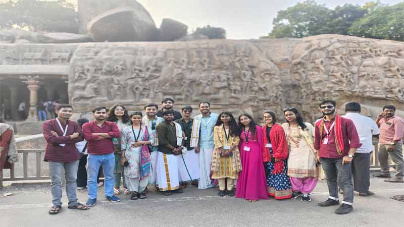 इसी क्रम में आज चार समूहों के छात्रों ने तमिलनाडु के ऐतिहासिक नगर महाबलीपुरम में स्थित विश्व धरोहर स्मारकों जैसे शोर मंदिर (आठवीं शताब्दी) एवं पंच रथ का शैक्षणिक एवं सांस्कृतिक भ्रमण किया। इस अवसर पर छात्रों ने पल्लवकालीन स्थापत्य कला, समुद्र तट से जुड़ी धार्मिक परंपराओं तथा भारत की प्राचीन वास्तु-संस्कृति को प्रत्यक्ष रूप से देखा और समझा। यह भ्रमण विद्यार्थियों के लिए इतिहास और संस्कृति को पुस्तकों से बाहर आकर जीवंत रूप में देखने का एक दुर्लभ अवसर सिद्ध हुआ।