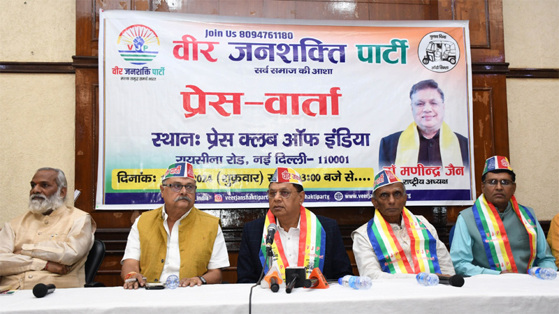 प्रेस क्लब ऑफ़ इंडिया में आयोजित पत्रकार वार्ता में पार्टी के राष्ट्रीय अध्यक्ष डॉ० मणीन्द्र जैन ने बताया कि इसी साल सितंबर माह में चुनाव आयोग मान्यता मिली है। उन्होंने कहा कि लोकतंत्र में सबको अपनी बात रखने का अधिकार है और साथ ही भारत के संविधान के अनुसार मांगे जाने का भी हर भारतीय को अधिकार है। इसी सोच के साथ वीर जनशक्ति पार्टी का गठन किया गया है। डॉ० मणीन्द्र जैन ने कहा कि पार्टी का मुख्य उद्देश्य ‘ जीओ और जीने दो’ का है, इसी के तहत हम हर भारतवासी को स्वावलंबी और समृद्ध बनाने का लक्ष्य तैयार कर रहे हैं। उन्होंने कहा कि देश के राजनीति में युवाओं और अच्छे लोगों को प्रवेश कराके ही वर्तमान में गिरते राजनीतिक स्तर के माहौल ठीक किया जा सकता है।