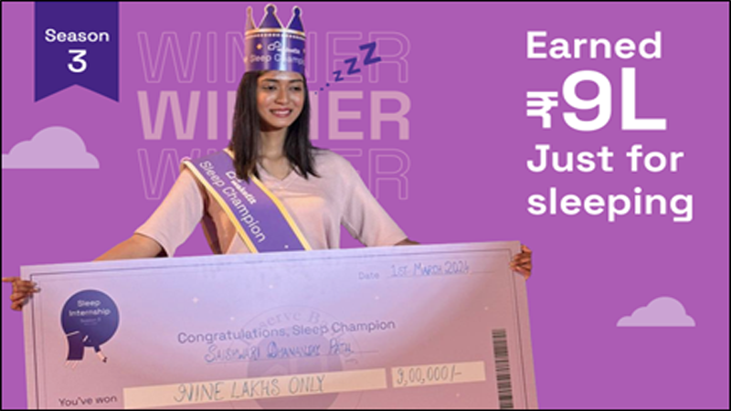 नई दिल्ली। डी2सी स्लीप एण्ड होम सॉल्यूशंस कंपनियों में से एक Wakefit.co ने आज द वेकफिट स्लीप इंटर्नशिप सीजन 3 के ‘स्लीप चैम्पियन’ की घोषणा कर दी है। बेंगलुरु में रहने वालीं ऑडिटर साइश्वरी पाटिल ने ‘स्लीप चैम्पियन ऑफ द ईयर’ का खिताब जीता और 9 लाख रूपये का ईनाम भी जीता। इस अनूठे और प्रतिष्ठित इंटर्नशिप प्रोग्राम के तहत, देशभर से मिले 5 लाख से अधिक आवेदनों में से 12 अभ्यर्थियों का चयन हुआ था। यह सभी लोग सोने और लखपति बनने का मौका पाने के लिये जी-जान से लगे थे। इस सीजन में 12 इंटर्न्स के बीच 7000 घंटे से ज्यादा की नींद को लॉग किया गया। फिर 4 फाइनलिस्ट को एक-दूसरे से मुकाबला करने के लिए एक कस्टम स्लीप पॉड्स में लाइव स्लीप-ऑफ में प्रतिस्पर्धा करने के लिए चुना गया। चुने गये सभी इंटर्न्स ने 1 लाख रूपये कमाये, जबकि साइश्वरी ने 99% के रिकॉर्ड स्लीप एफिशियेंसी स्कोर के साथ द वेकफिट स्लीप इंटर्नशिप सीजन 3 की विजेता बनकर दिखाया। फिनाले को भी लाइव कैमरा से देखा गया, जिसका नजारा यहाँ मिल सकता है।